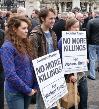 The rallies organised by the Irish Congress of Trade Unions, which attracted the support of the majority of working class people were also used as an opportunity to argue that the choice working class people have – is between the Assembly parties or the dissidents and a return to sectarian conflict. This was summed up in ICTU President Patricia McKeown’s speech outside Belfast City Hall which urged people to stand united with the sectarian parties in the Assembly; the same parties who are attacking public services and workers jobs and conditions!